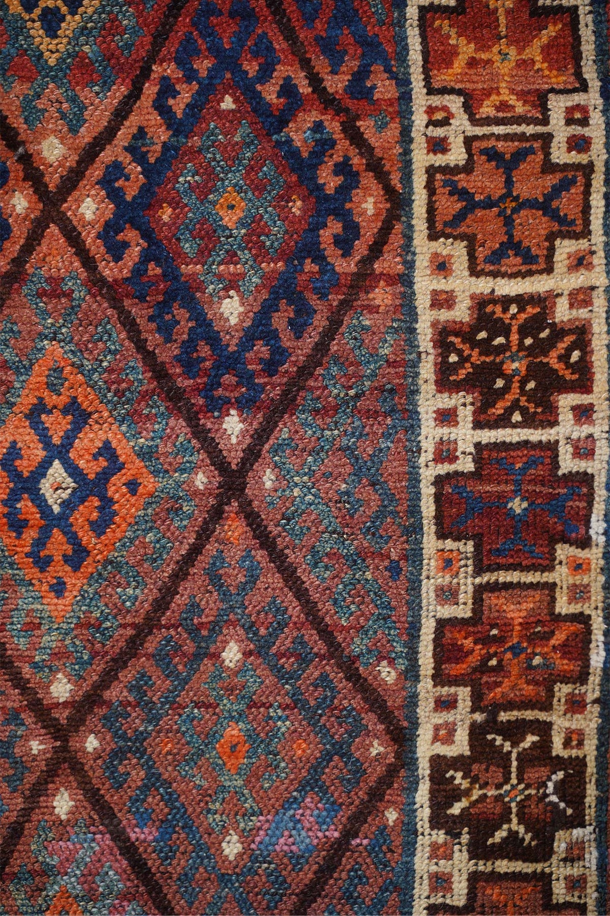 Hand-Knotted Caucasian Runner | Diamond Lattice Medallion Field with Tribal Border | Detail View