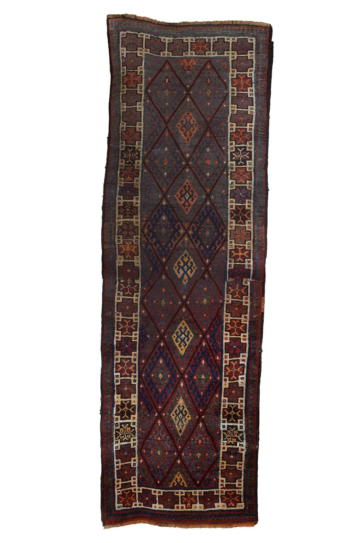 Hand-Knotted Caucasian Runner | Diamond Lattice Medallion Field with Tribal Border | Front View